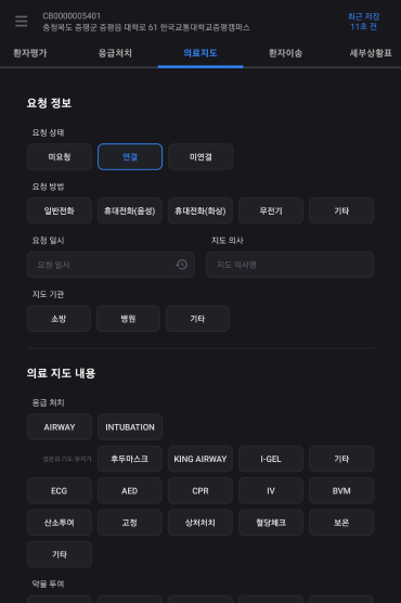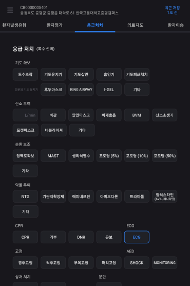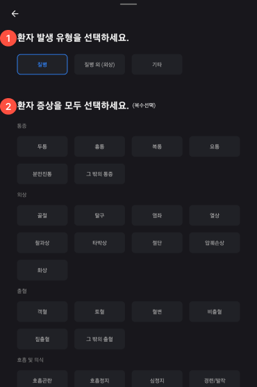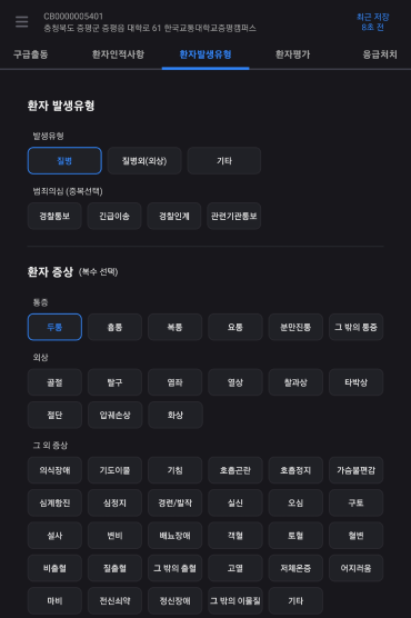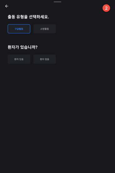 출동 유형 및 환자 유무을 선택한다.
