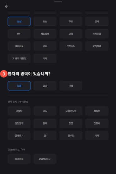 2환자 유무(환자 있음)를 선택한다.