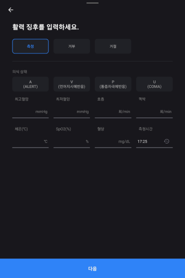 활력징후를 입력한다.