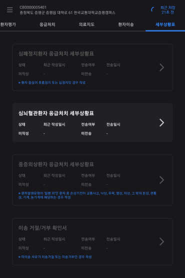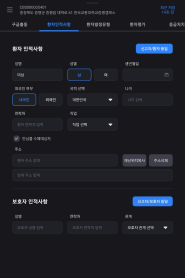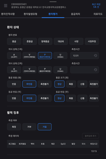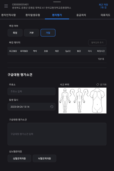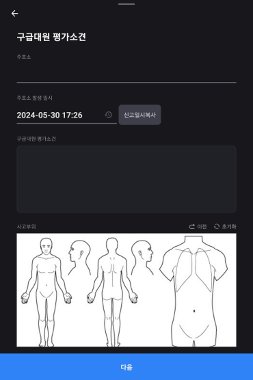 구급대원 평가소견을 작성한다.