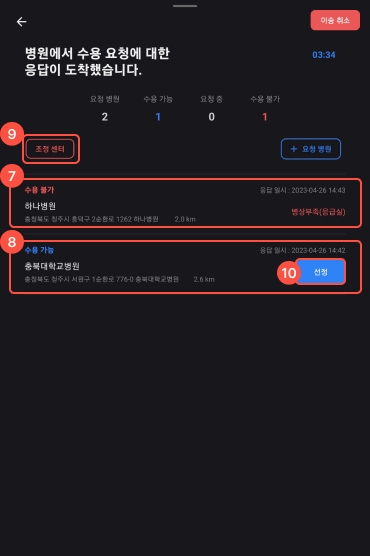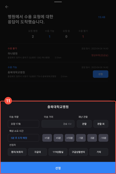 2병원 수동 선정 : 환자 수용 여부를 확인하지 않고 다이렉트로 병원 선정한다.