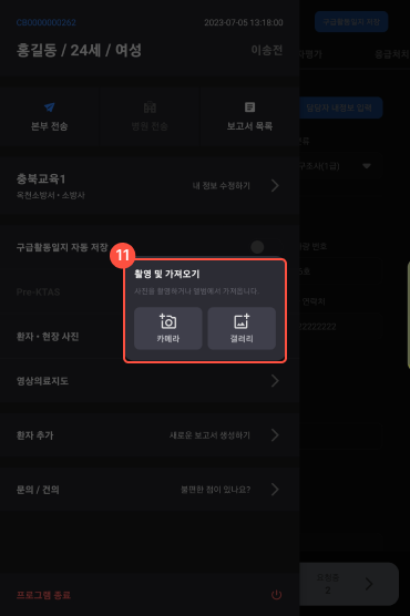 11 환자, 현장 사진 추가 항목이다.