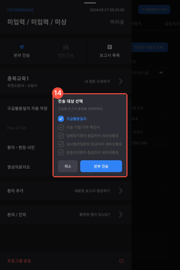 14 본부 전송 대상을 선택하여 전송한다.