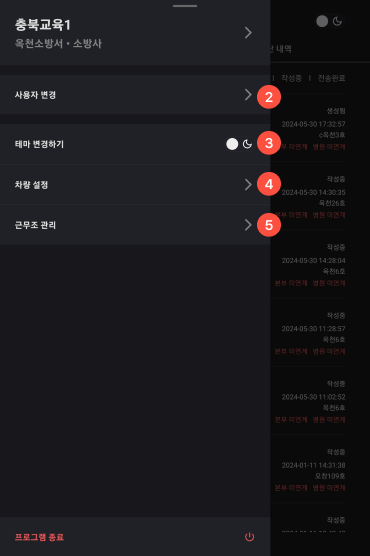 5근무조 관리 메뉴이다.