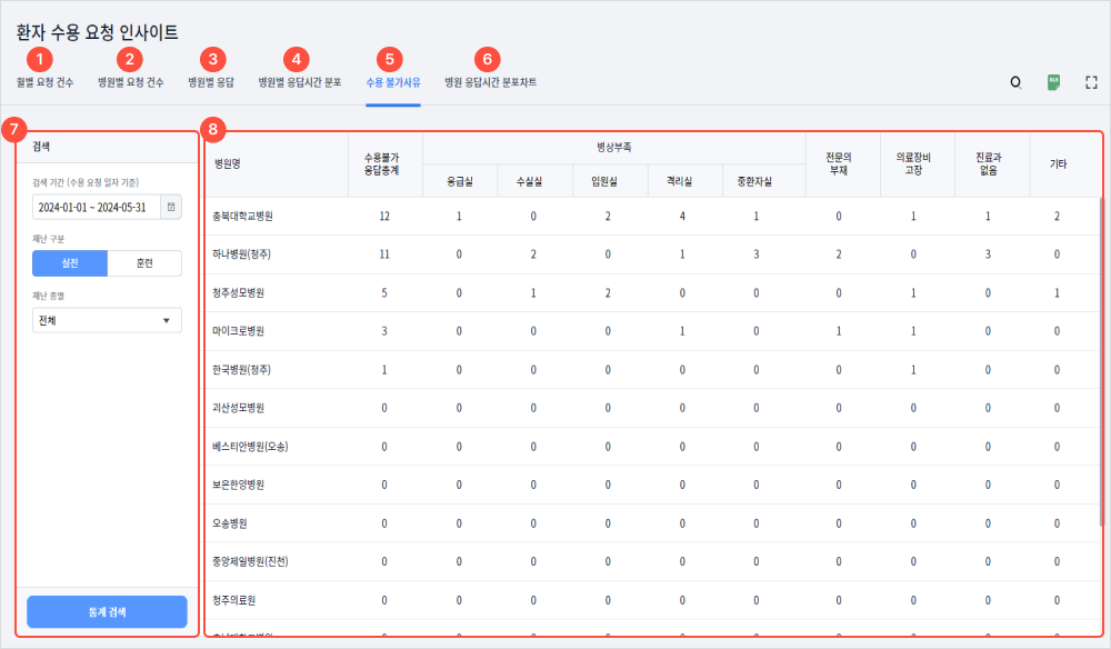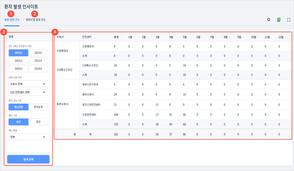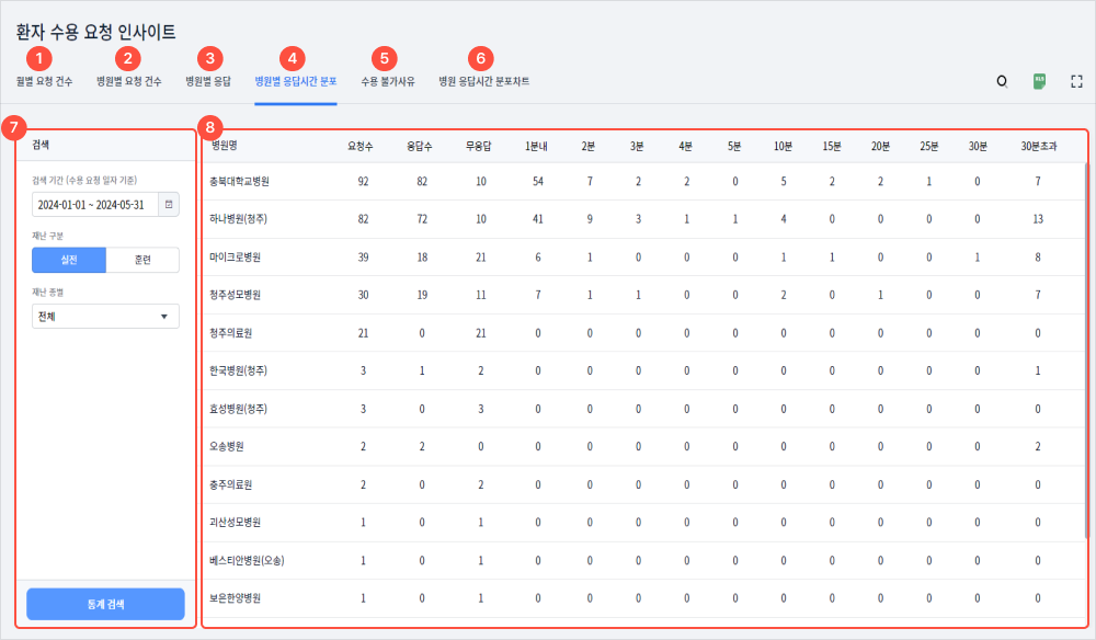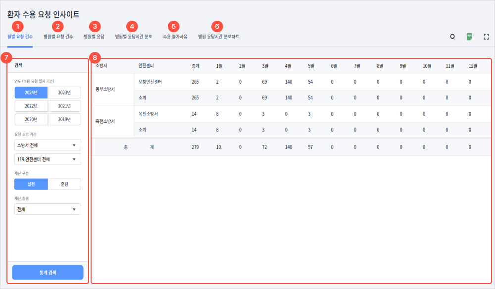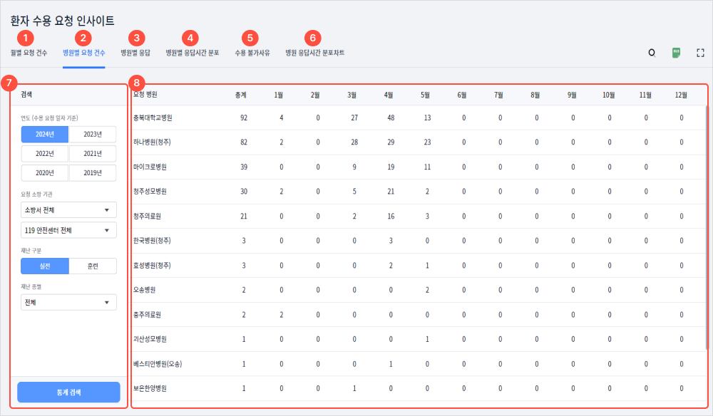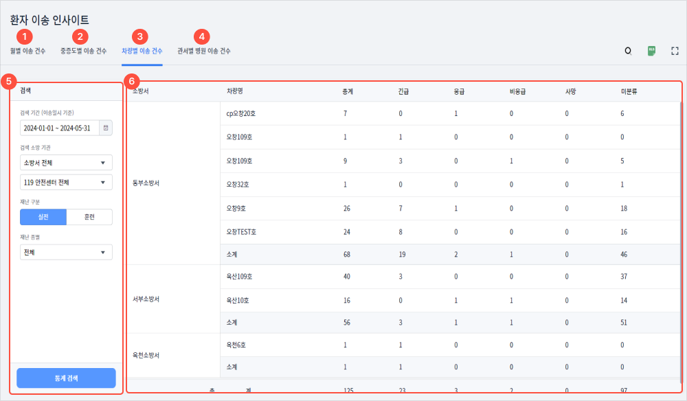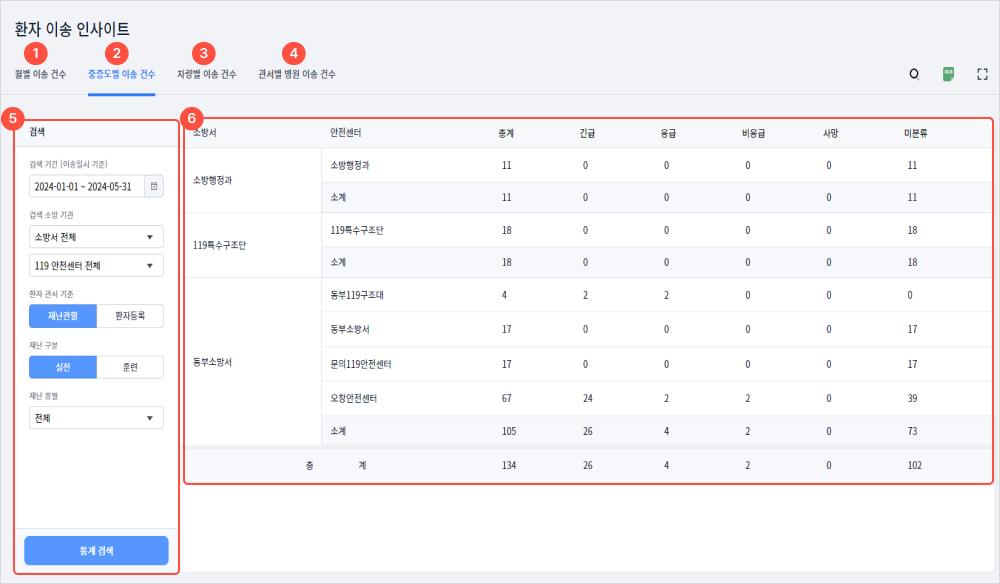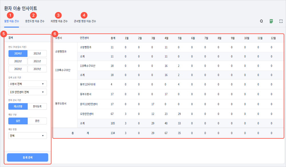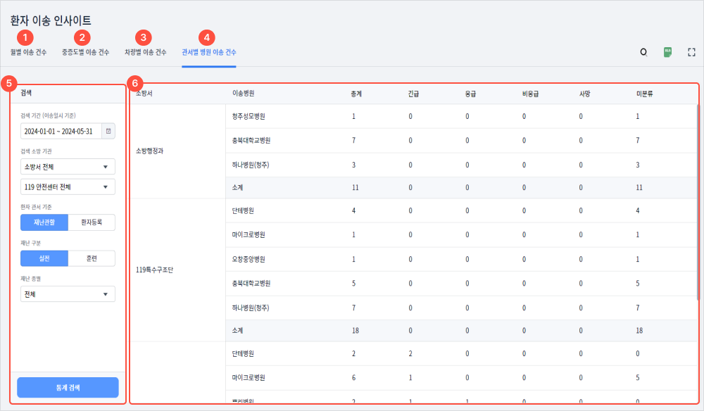 4관서별 병원 이송 건수를 확인할 수 있다.
