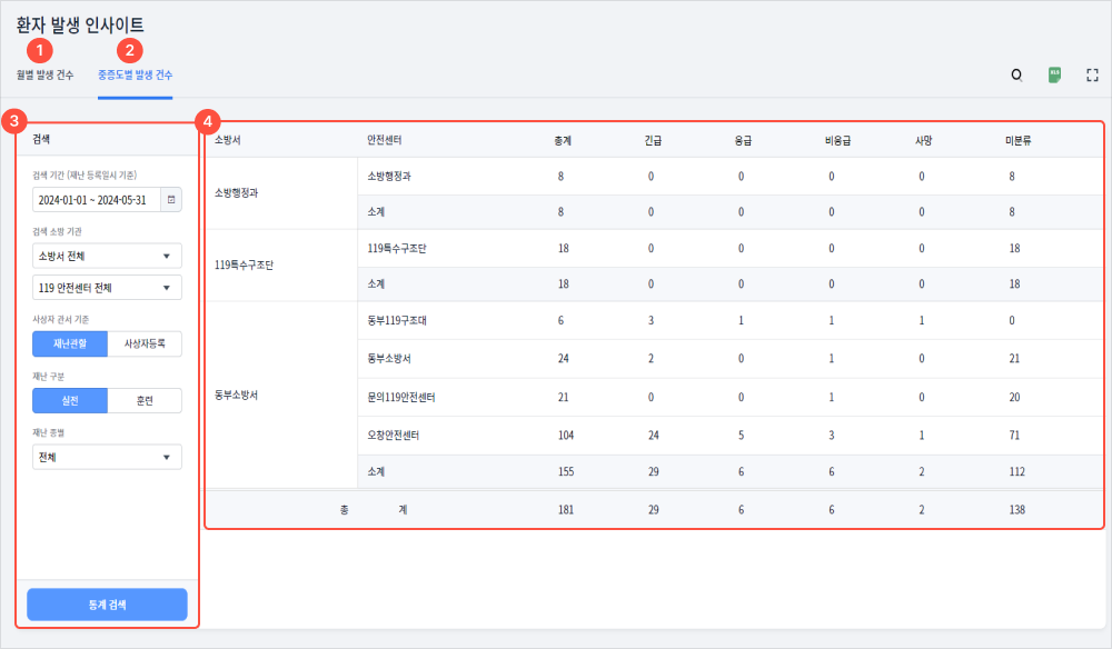 2중증도별 이송 건수를 확인할 수 있다.