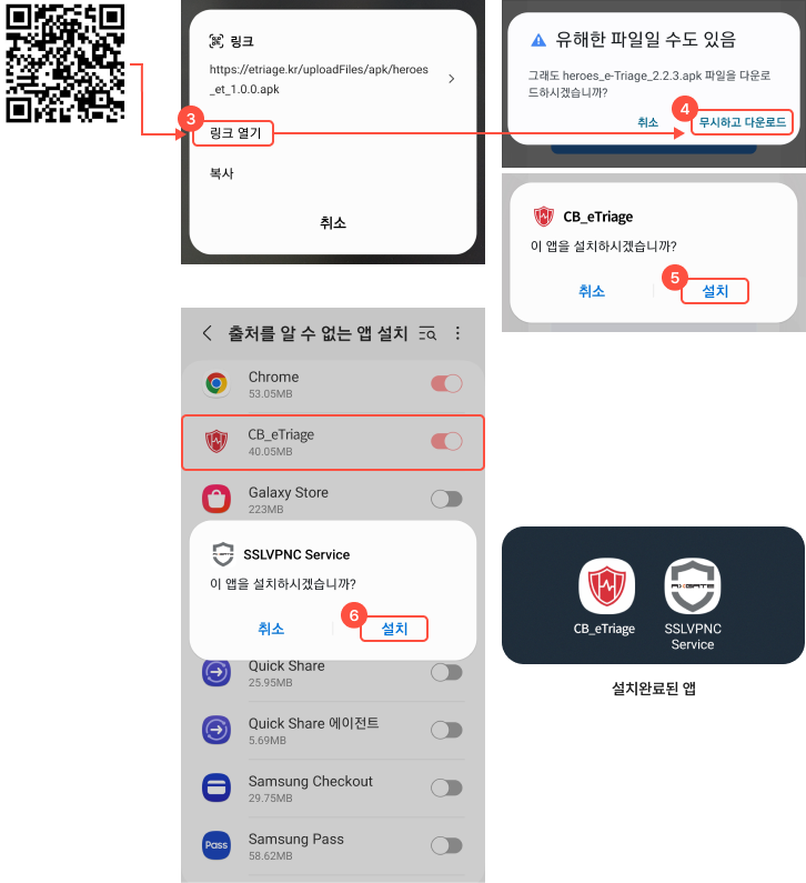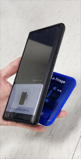 4e-Triage tag 중앙 부분에 스마트폰 접촉 또는 QR코드 인식