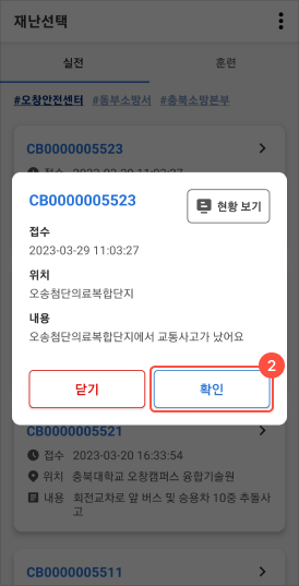 2재난정보 확인 후 “확인“ 버튼을 선택