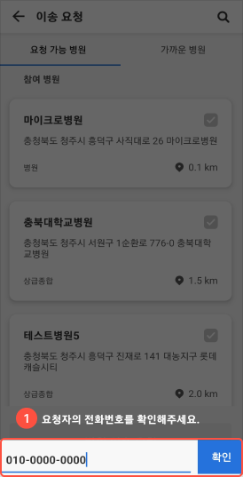1요청자 전화번호 확인 * 병원에서 구급대원과 통화 필요시 사용